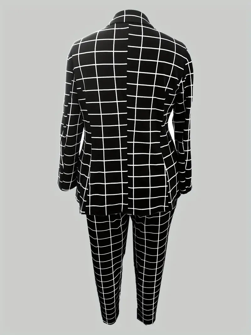 Liora | Dame Blazer og Bukser Sæt i Ternet Mønster – Tidløst, Simpelt Outfit til et Elegant Look